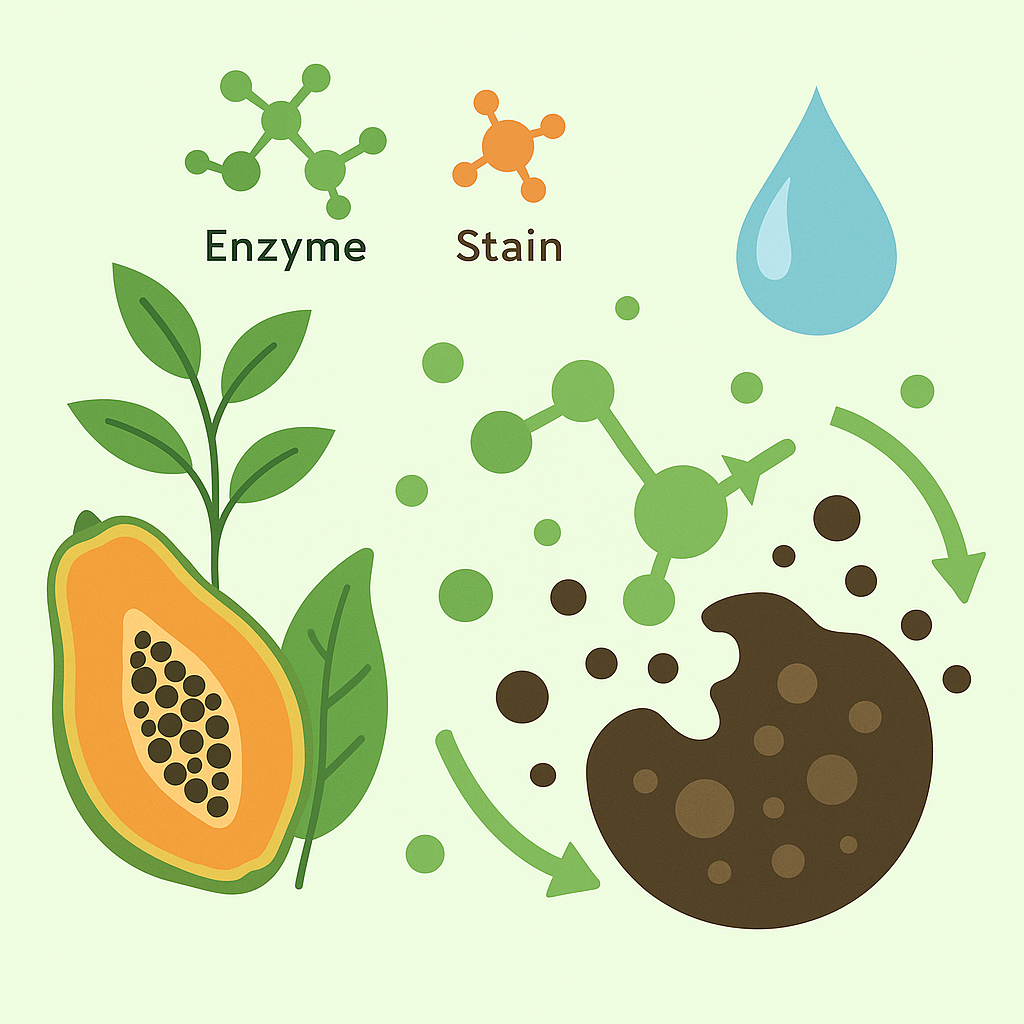 EcoWave кърпичките съдържат ензими от растения, които разграждат протеини, мазнини и замърсявания – без да увреждат дрехите и без да дразнят кожата.